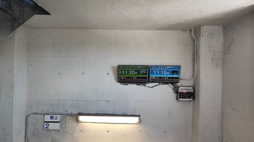 電光掲示板にはおそらく時刻表の時間が表示されているようです。