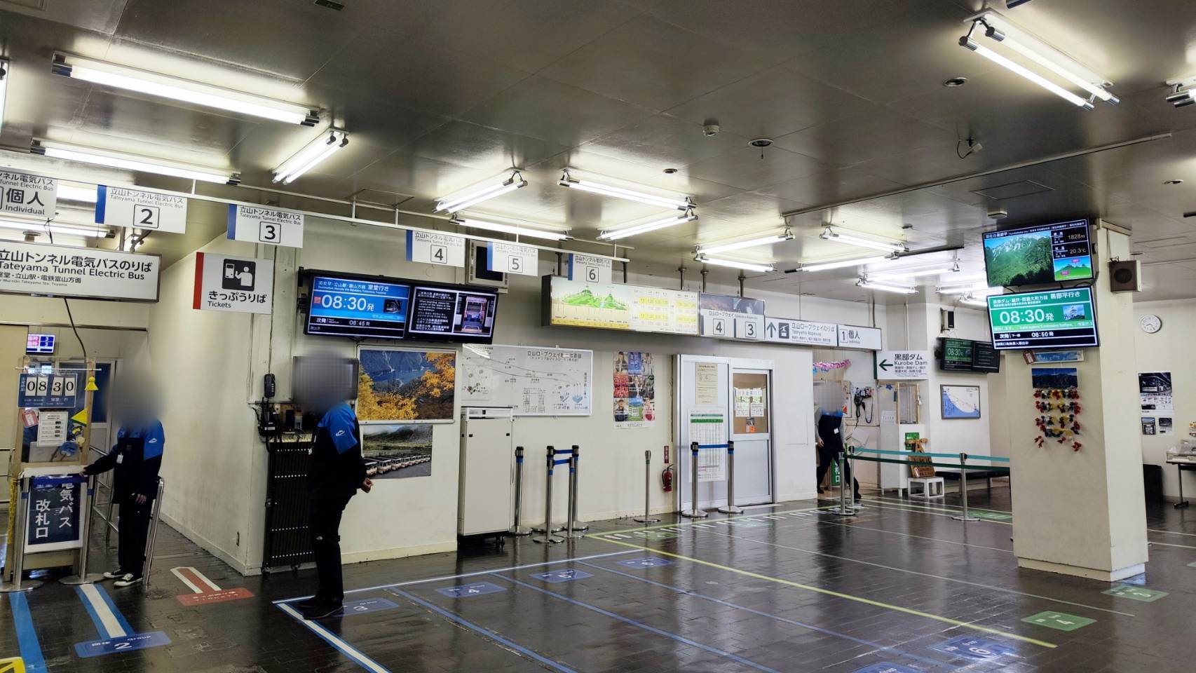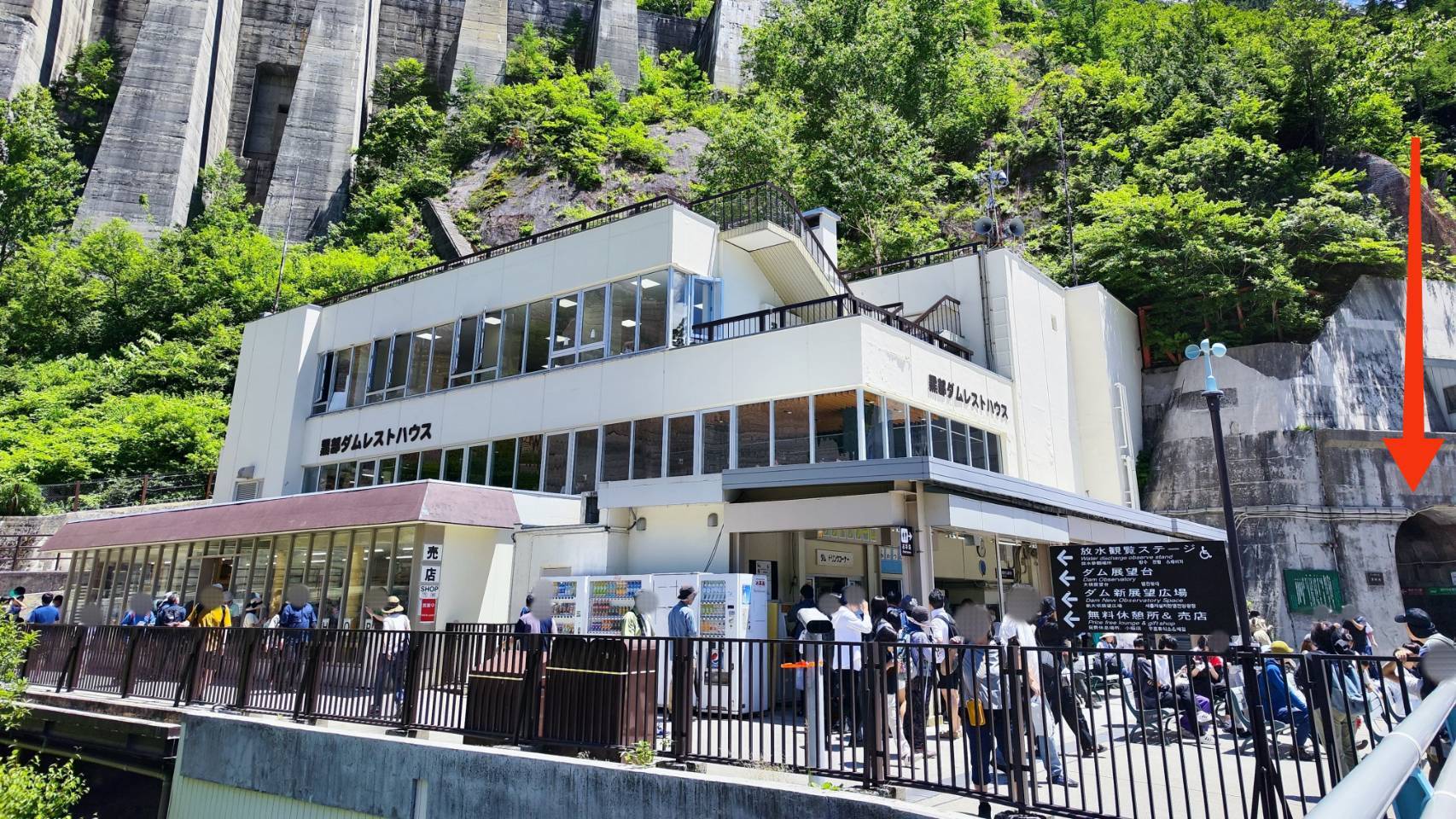 電気バス乗り場は、黒部ダムレストハウスの右側にあるトンネルの中です。