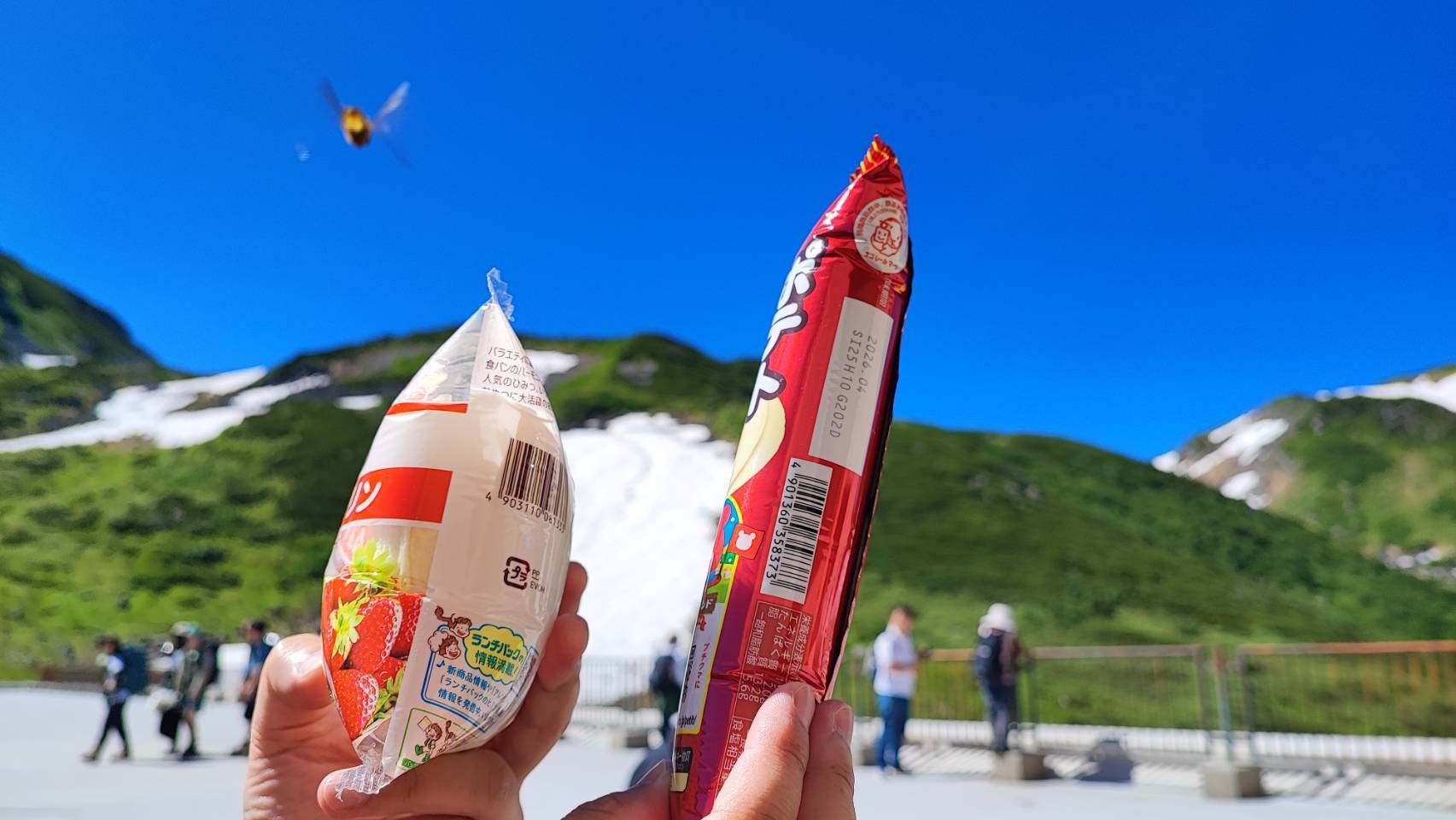 大きめの虫がいっぱい飛んでいたので、こんな標高の高い所にも住んでいる生き物がいるんだねと話しながら、パンパンに膨らんだランチパックを食べました。