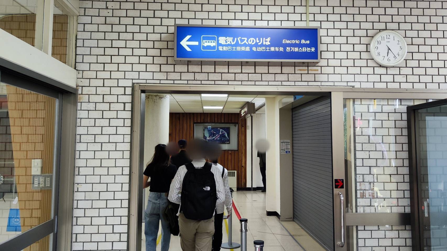 階段を下った先が、次に乗る電気バス乗り場です。