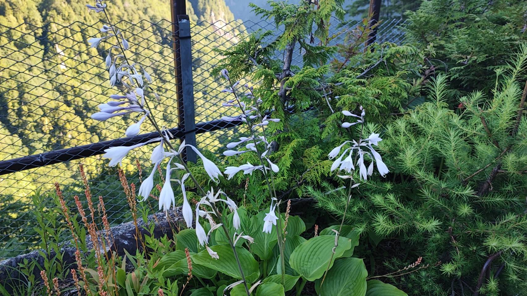 ちょこんと咲いているギボウシやホタルブクロを見ながら、さらに階段を下ります。