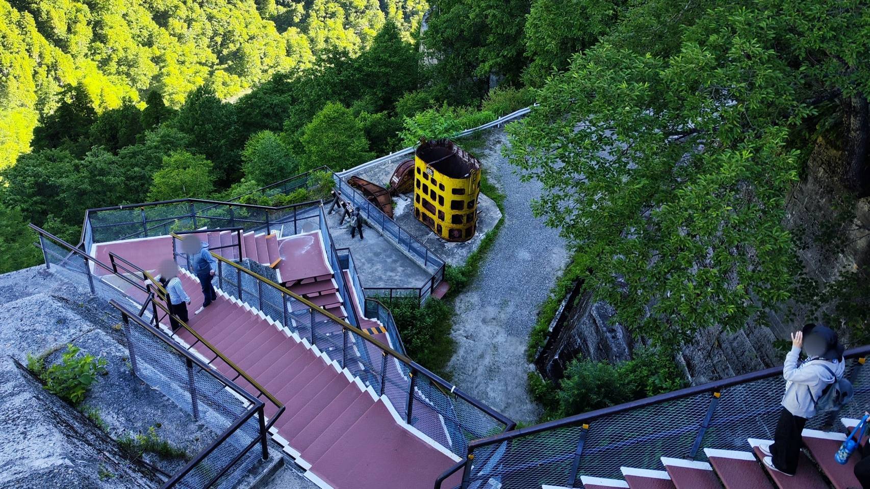 階段を下ると、放水に一歩近づくことができます。