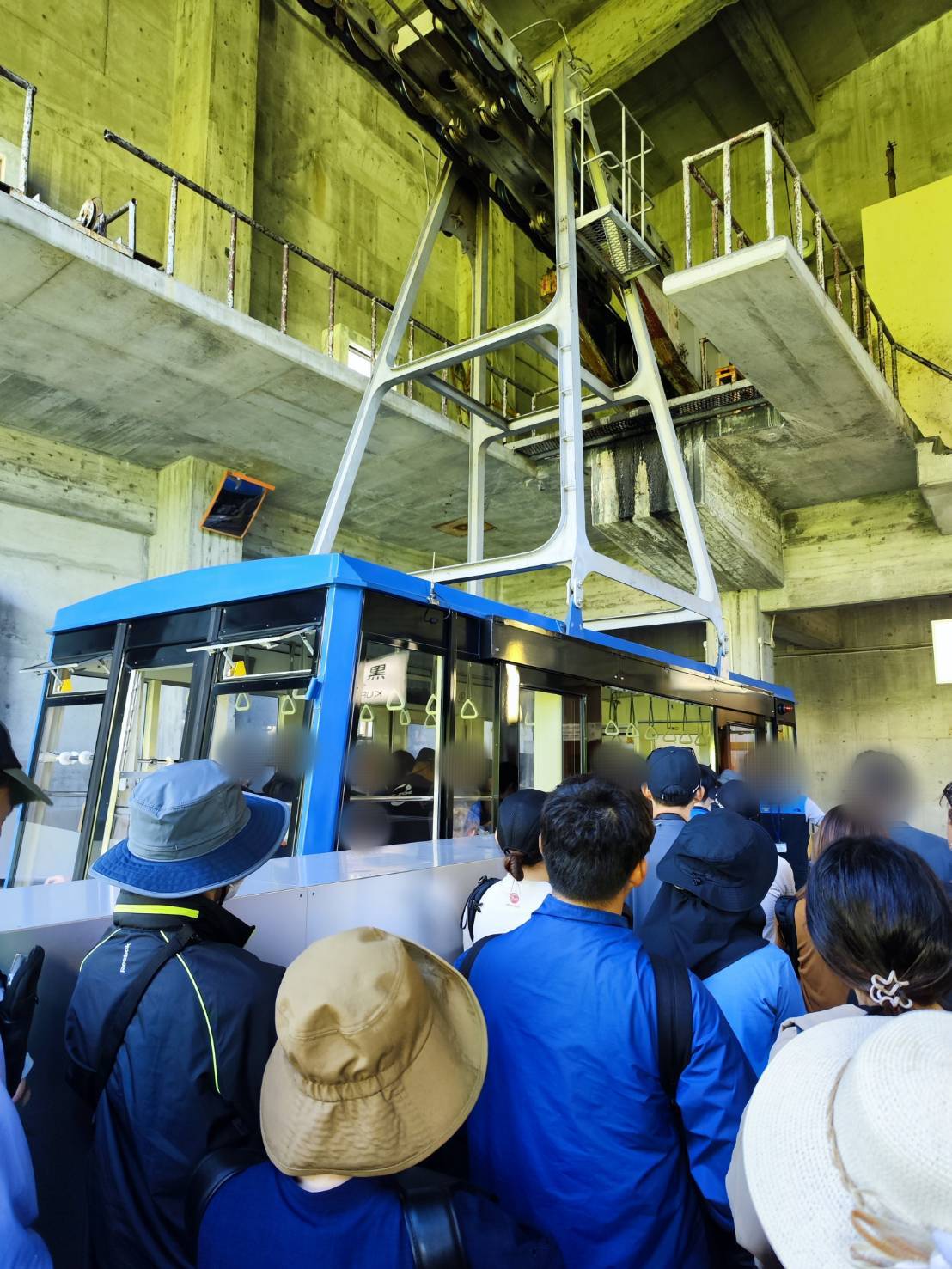 - 次の乗り物であるロープウェイ待ちの列ができていた