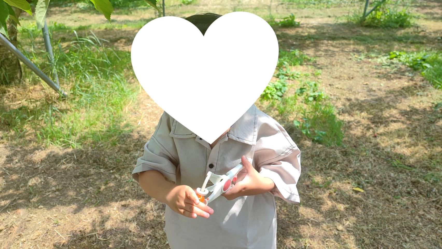 \ 4歳でも簡単!斎藤観光果樹園に持ち込みOK