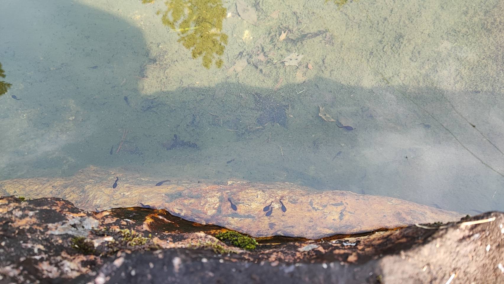 近くに水が溜まっている場所があり、おたまじゃくしが泳いでいる様子が見られました。