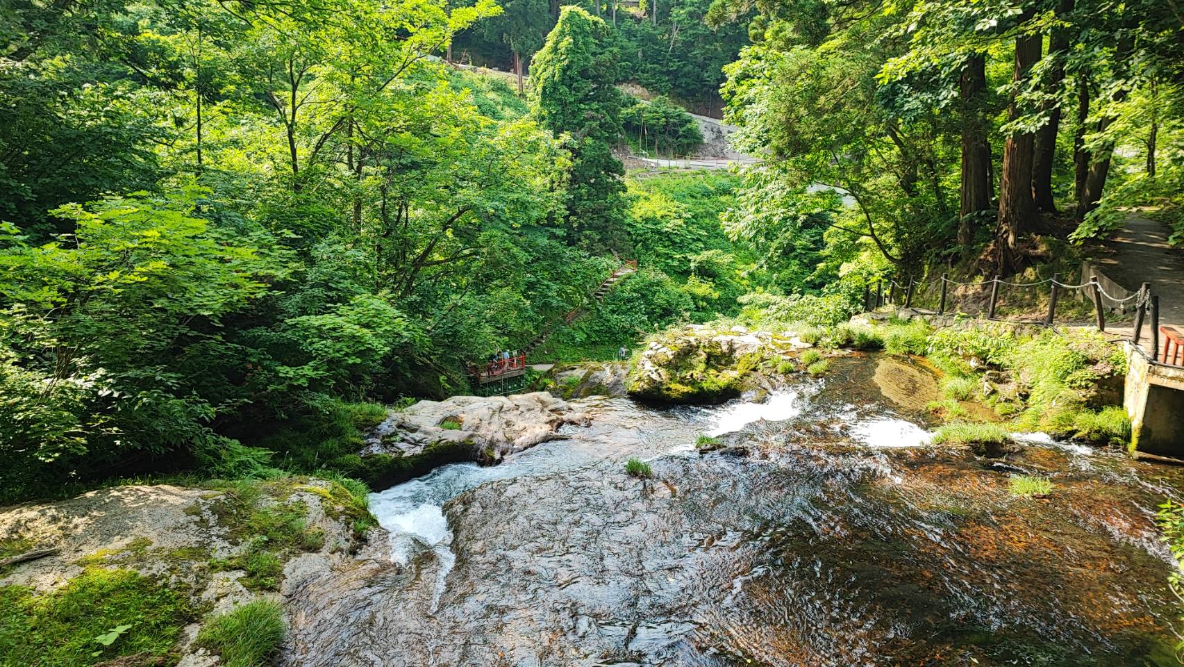 滝の向かい側には展望台があり、行くには流れる川に架かる橋を渡る必要があります。