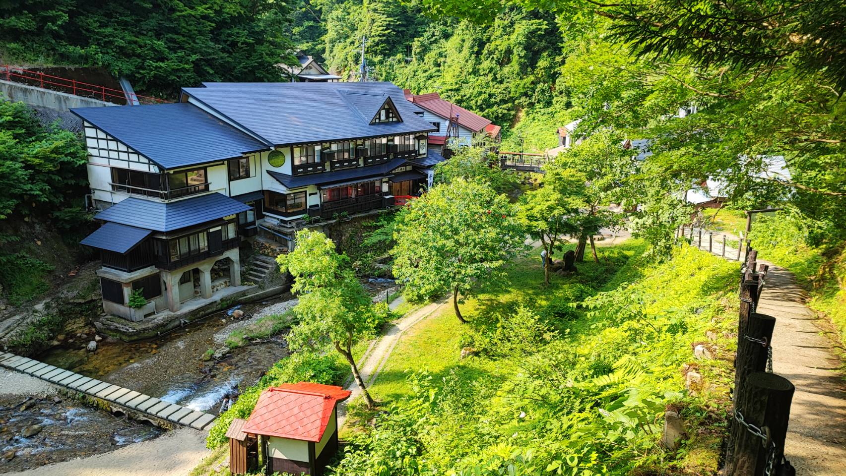 有名な場所は温泉街の手前部分ですが、奥にもまだまだ道は続き絶景が潜んでいます。