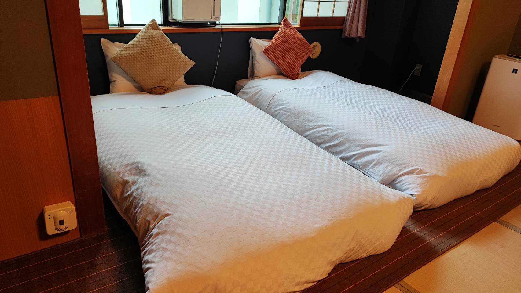 和室でありながら寝るためのベッドが奥に置いてあり、とても広く感じました。