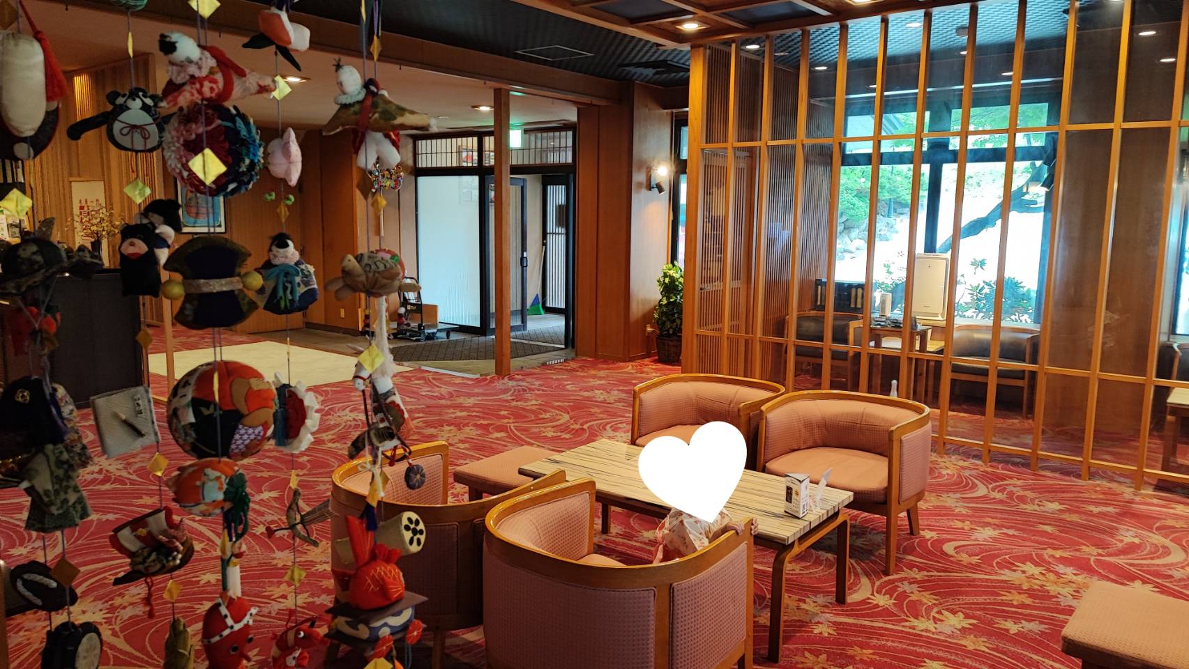 明るい雰囲気のロビーで、甚平を着たこどもとウェルカムドリンクを飲む時間に癒されました。