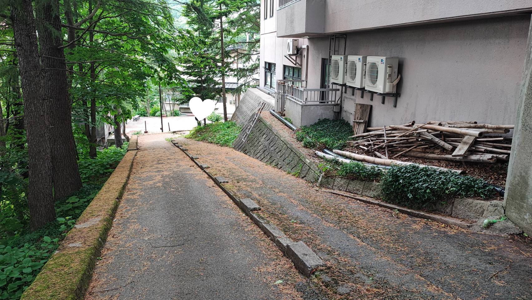 誰でも無料で入れる足湯があるのは、旅館の横の下り坂を歩いてすぐです。