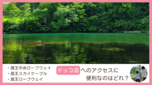 この場所から見えるロープウェイに乗ると、エメラルドグリーンが神秘的な人気観光スポット「ドッコ沼」に行くことができます。