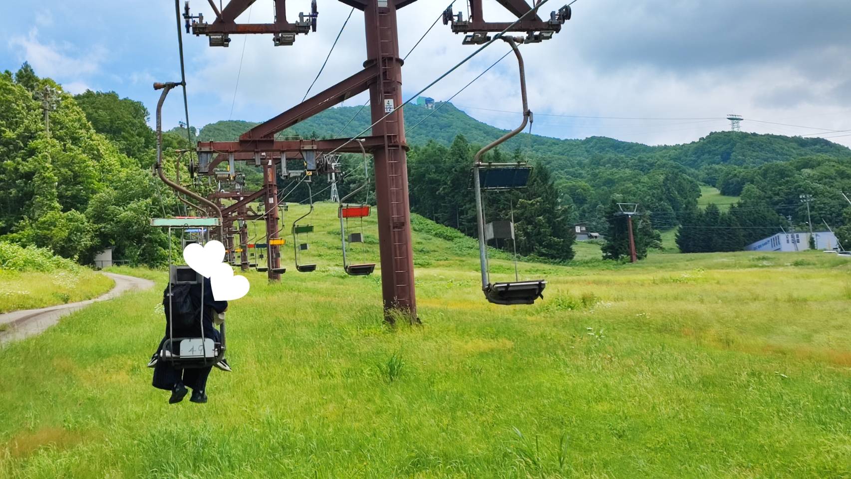 山の中腹にあるスタート地点へ行くのに、まずリフトに乗ります。